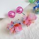 earJOJO 手作耳環 粉色蝴蝶瀑布
